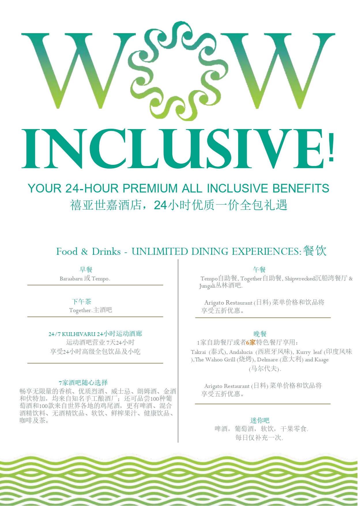 ⑤所有WOW优质一价全包的礼遇均不可转让 。
